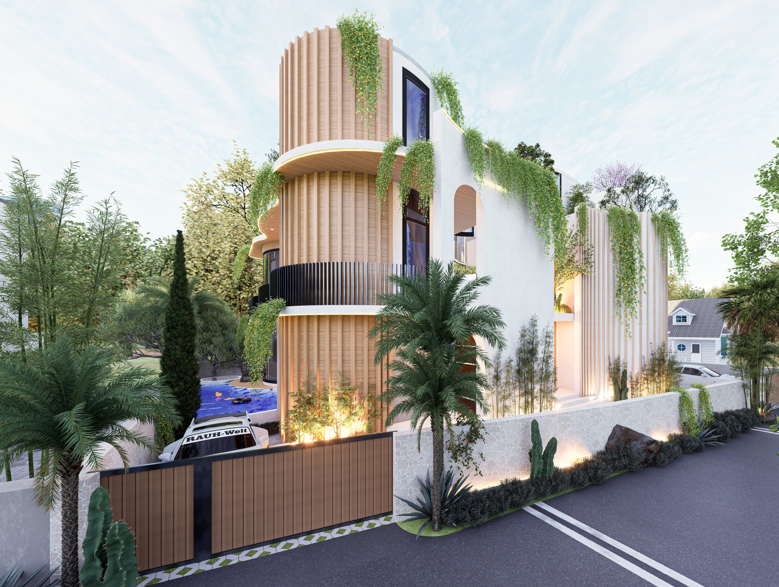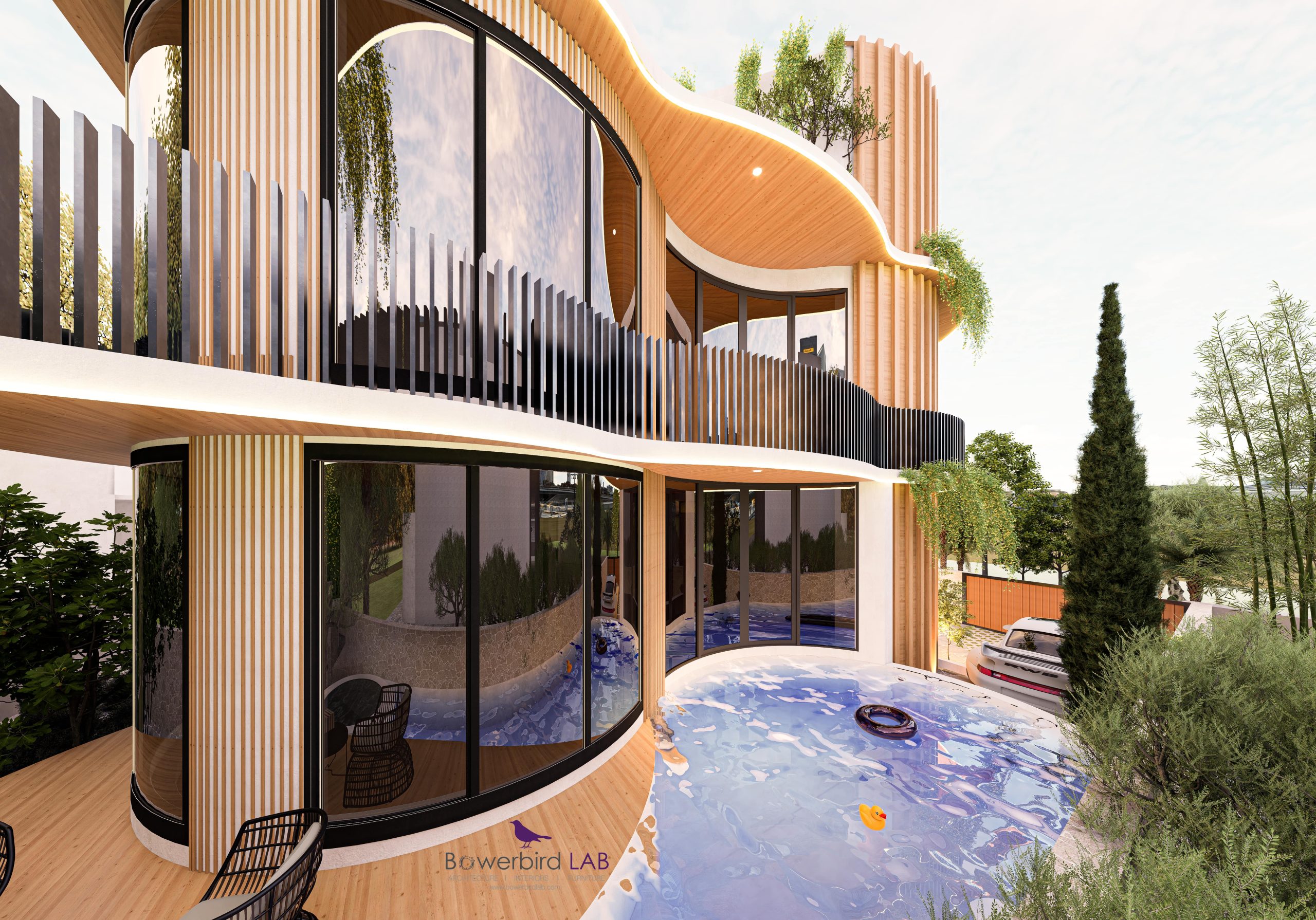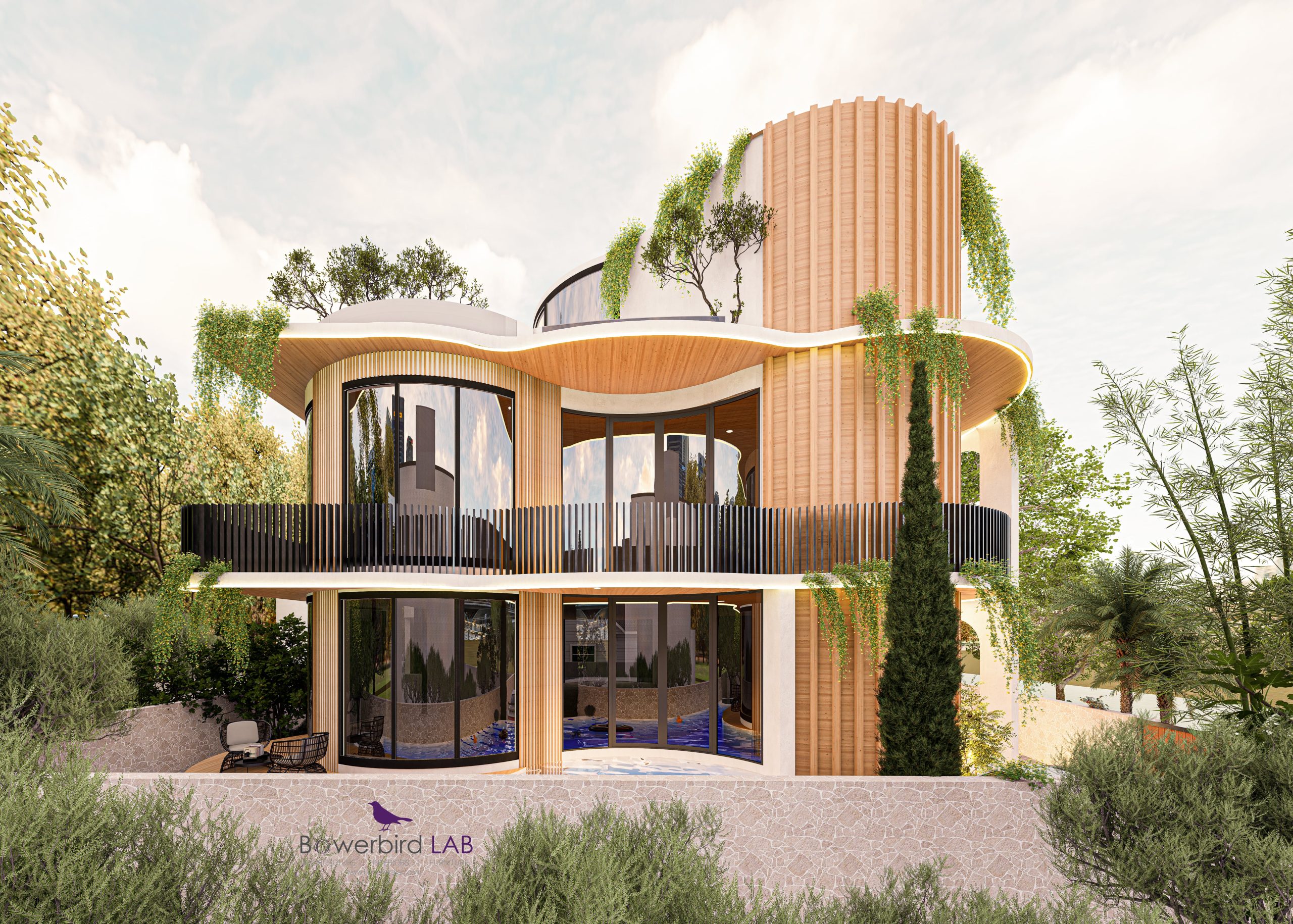 luxury with nature, emphasizing openness, natural light, and sculptural architectural expression.